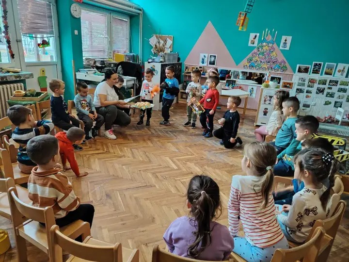 15.10.2025. Kroz zajedničke aktivnosti svih skupina djeca su se upoznala s procesom nastanka kruha, razvijala su osjećaje zahvalnosti i poštovanja prema radu poljoprivrednika i pekara. Zajedničkim snagama doprinosili su timskom radu, a miris pizze širio se našim vrtićem.