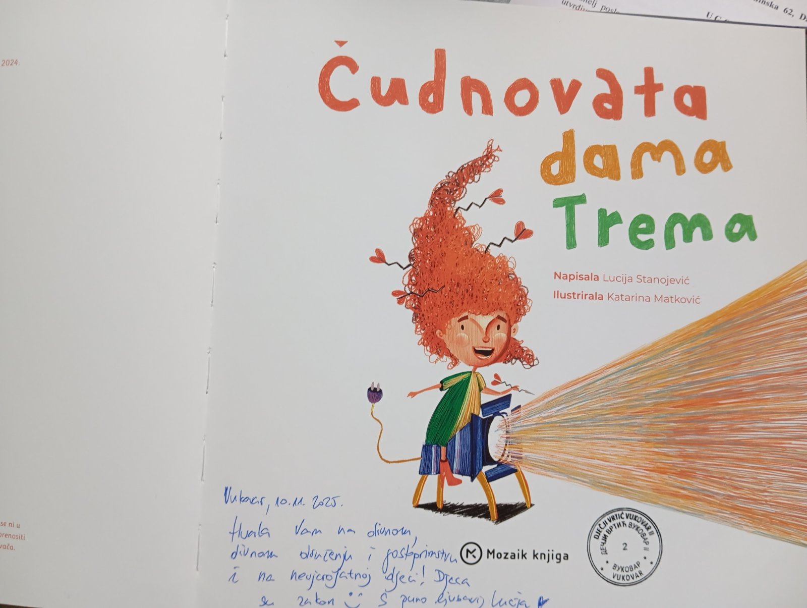 Такође, 2024. године, Луција је објавила сликовницу „Чудна госпођа Трема“ коју имамо у нашем вртићу, а данас нам је написала посвету и пожелела да се врати у наш вртић!